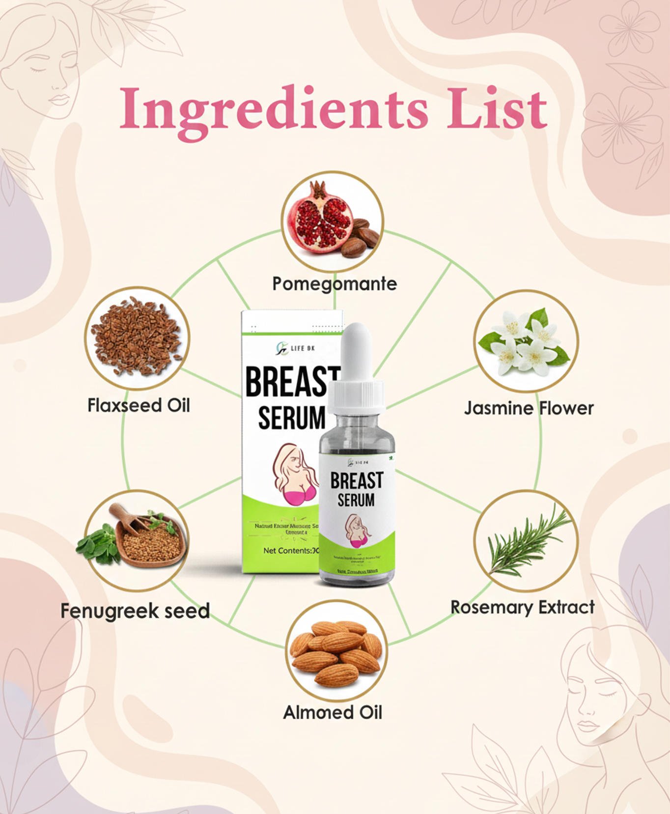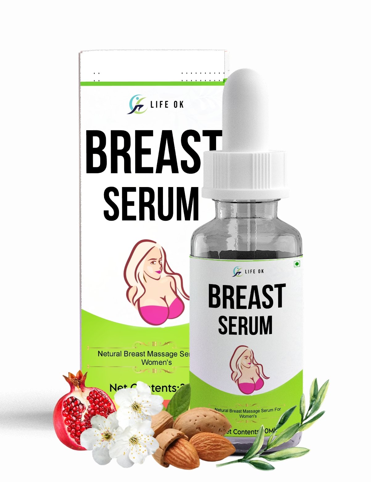Unlock your feminine beauty with LifeOk Breast Enlargement Serum, a premium herbal formula designed to increase breast size naturally, tighten skin